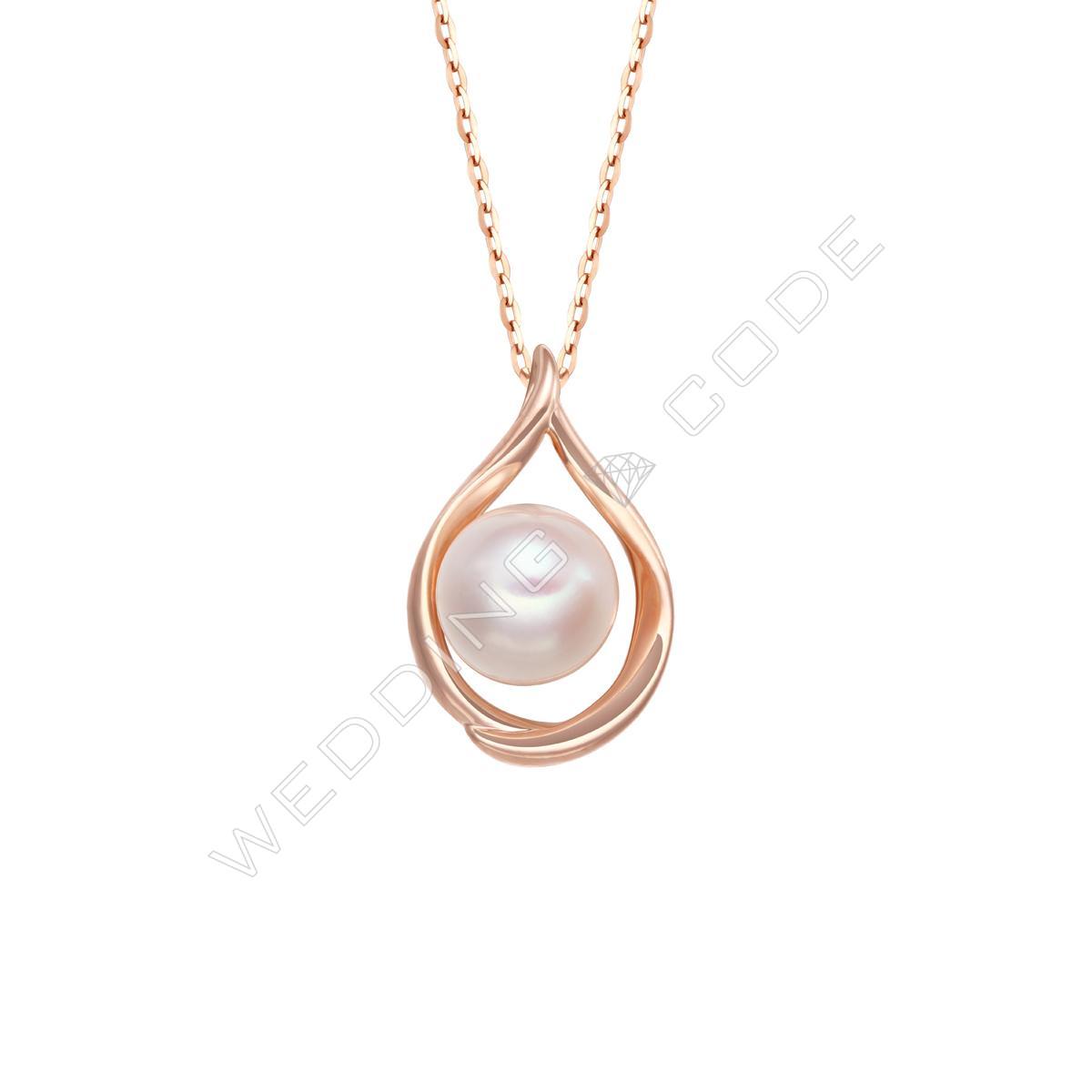 項鍊 天然珍珠 單珠7.6mm|玫瑰金|#4473